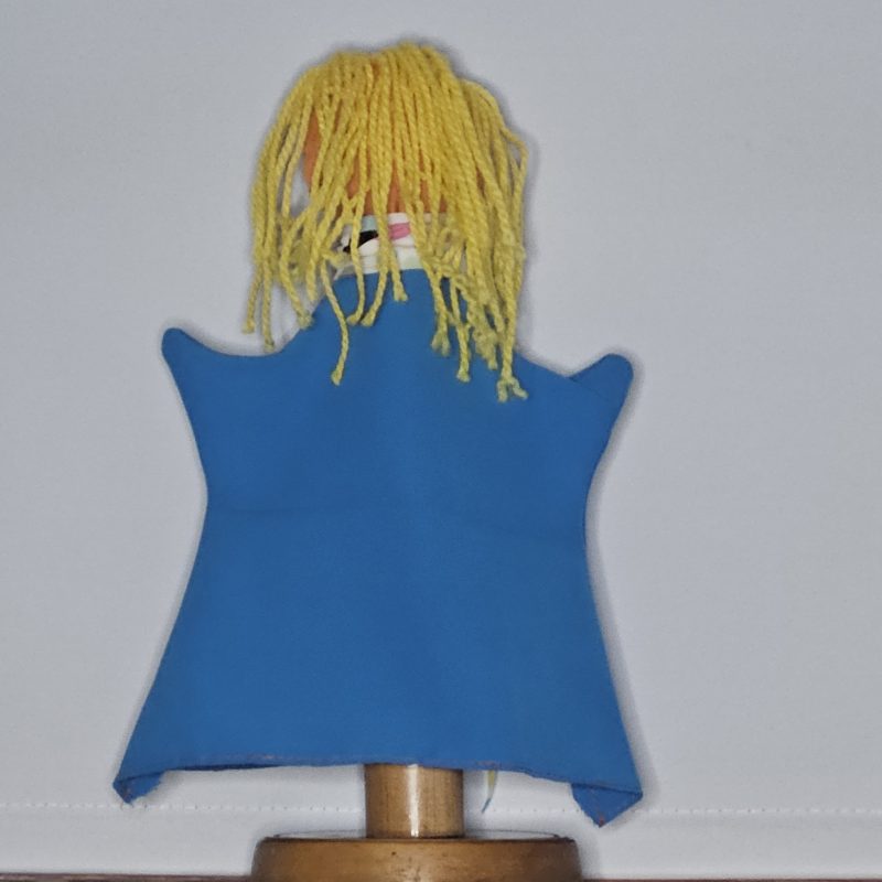 Cada uno fue confeccionado a mano con retazos de tela recuperada (26 cm de alto y 18 cm de ancho, de manito a manito).